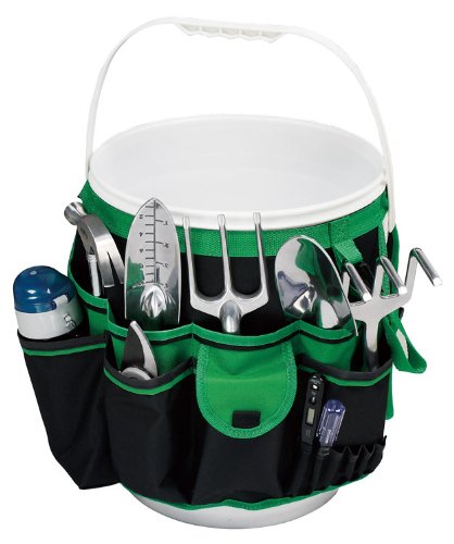 Get organized with the Apollo Tools Bucket Tool Organizer. This Bucket Tool Organizer is made of single layer 600D oxford cloth w/PVC inner layer and will convert your 5 gallon bucket into a tool organizer. It is perfect for keeping your tools organized, protected and easily accessible. With the hook and loop fastener strap it fits any 5 gallon bucket and makes carry tools a breeze. Utilizes 14 inside pockets and 34 triple row outside pockets to hold anything and everything from your garden tools, gloves, seeds, marking sticks, string, scissors, tape , water bottle, and/or cell phone. Made of an extremely durable cloth constructed of PVC coated polyester material that is extremely tear resistant. This material is typically found on products that require abrasion resistance and waterproof characteristics like backpacks, hunting equipment or luggage. Color is Black with green accent. Bucket not included.